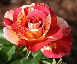 Alfred Sisley is a remarkably pretty Delbard Rose which produces masses of striped blooms in clusters - flowers are coloured salmon/pink/orange/red/gold - a confusion of colours which draw the eye and want you to go closer to see all the appealing shades - totally beautiful!