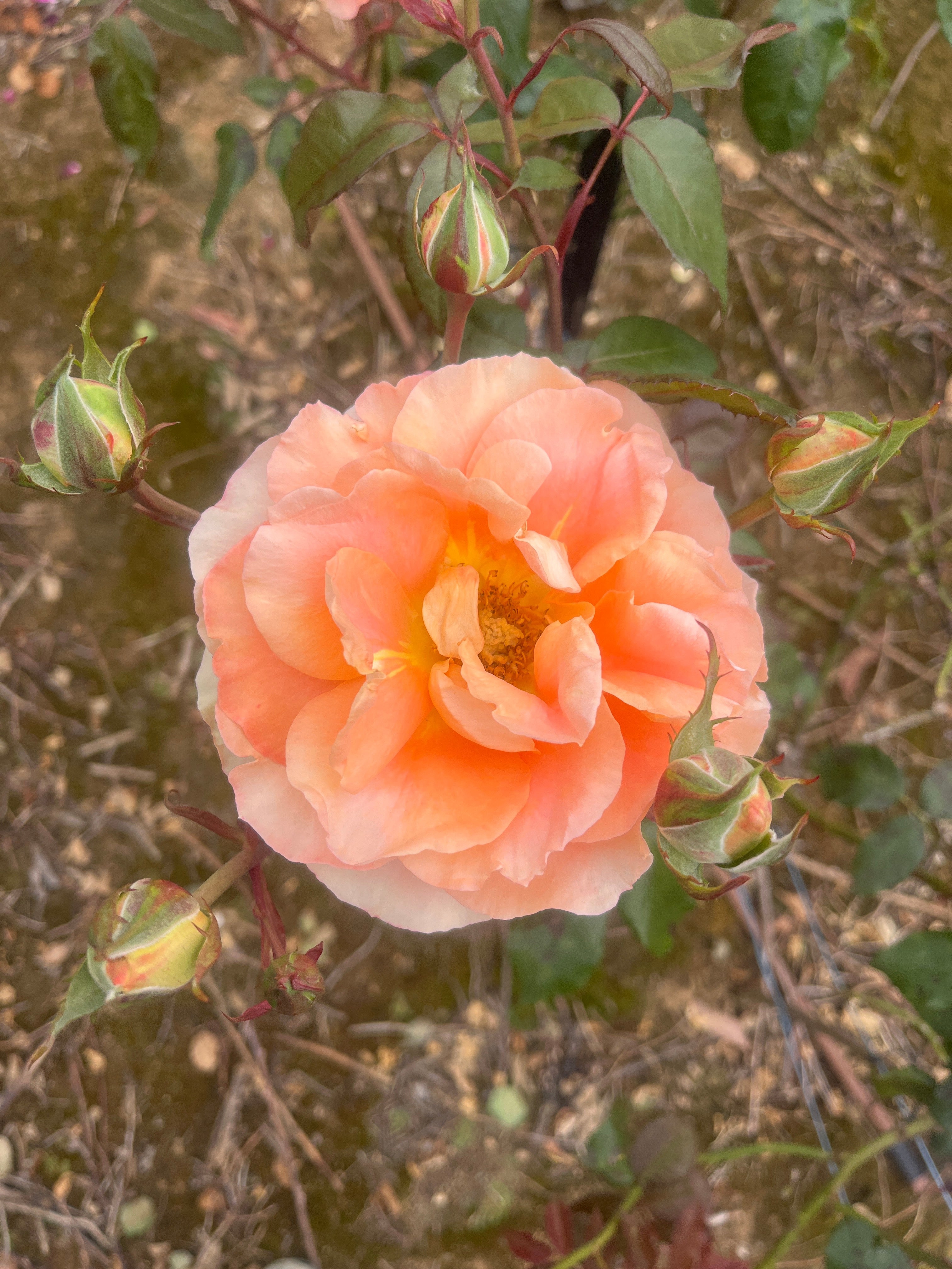 Soft apricot-peach blooms with subtle pink tones