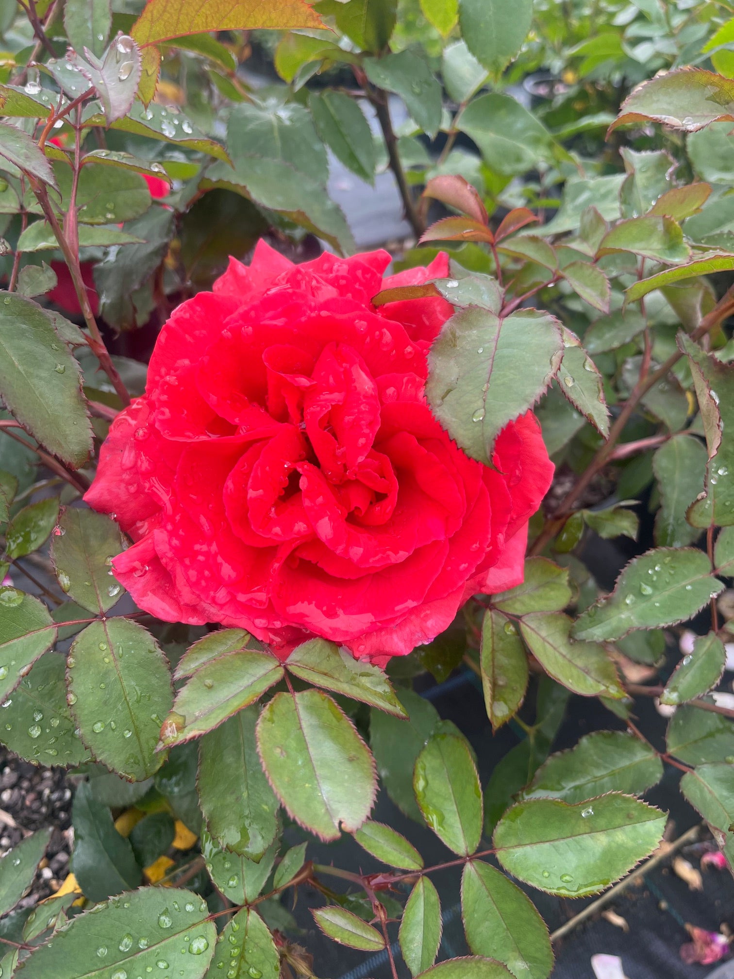 Fragrant Cloud is a Hybrid Tea rose of coral-red / geranium-red with long-stemmed blooms borne singly. The magnificent fragrance is damask, fruity, spicy and very sharp.