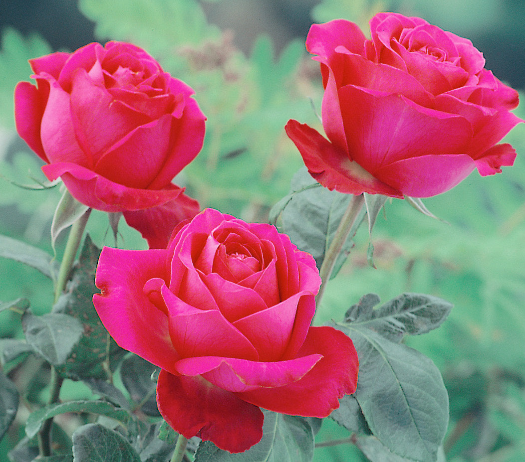 Glowing bright cerise pink flowers set amidst shiny dark green disease resistant foliage. The fast repeat flowers are excellent for indoor display. Growth 1m.