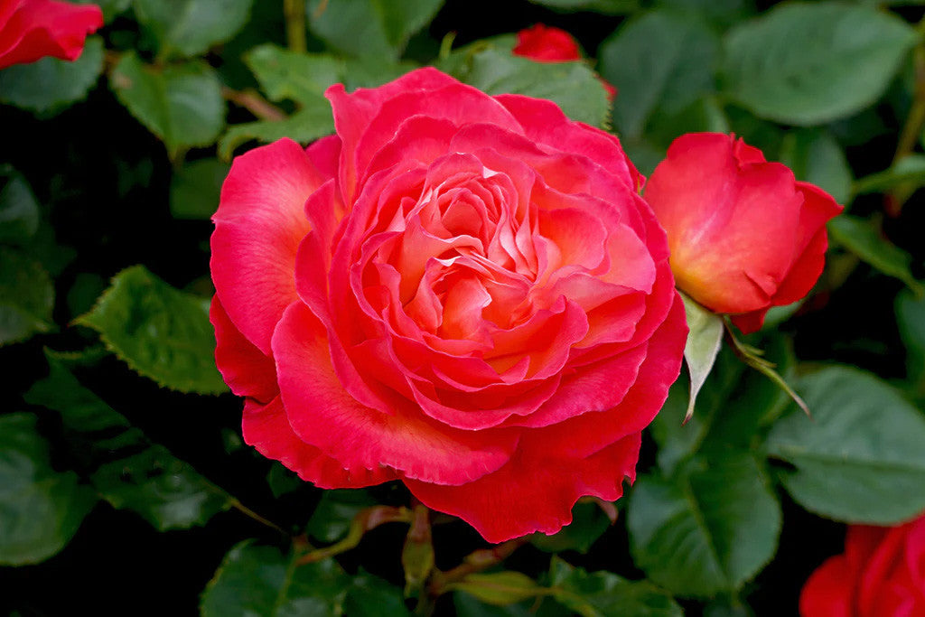VOLCANO – This modern shrub boasts medium-sized blooms in a stunning red-orange hue that's sure to add a fiery pop of colour to your garden.